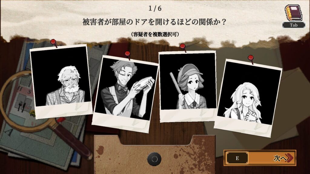 そこで容疑者たち自らに事件の振り返りをしてもらいます。これは本作ならではのシステムですね。